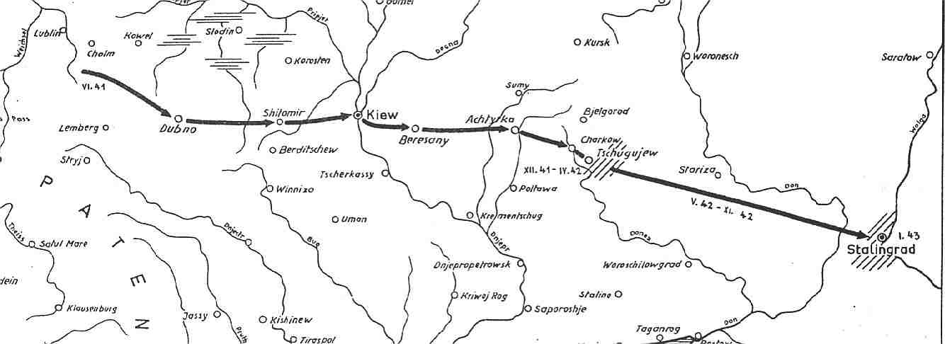 Gegend Morosowskaja getrieben , ca. 200 Km Luftlinie von d. Div. entfernt, da